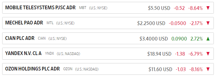 Nasdaq halted the trading of several other Russian companies, including search-engine operator Yandex NV and online retailer Ozon Holdings, citing “news pending.” Ozon, sometimes called Russia’s Amazon.com, held its initial public offering on the Nasdaq in 2020.